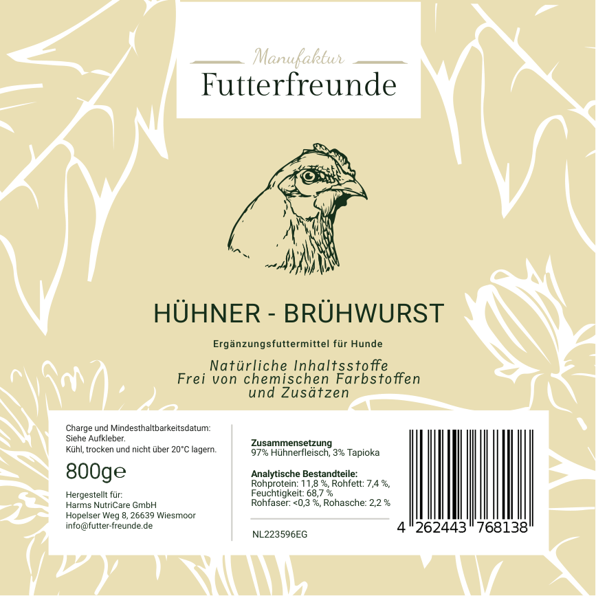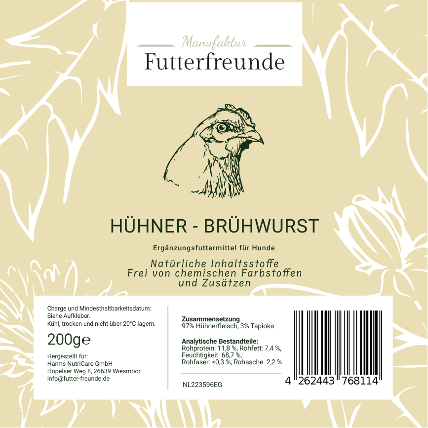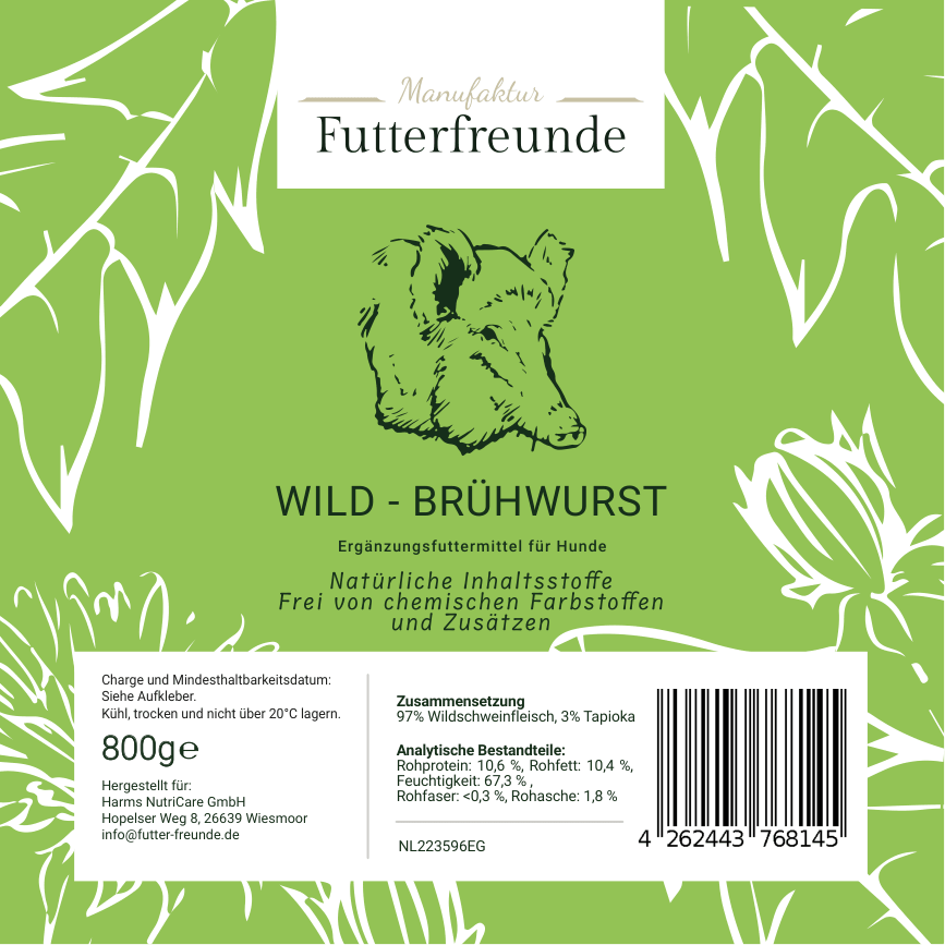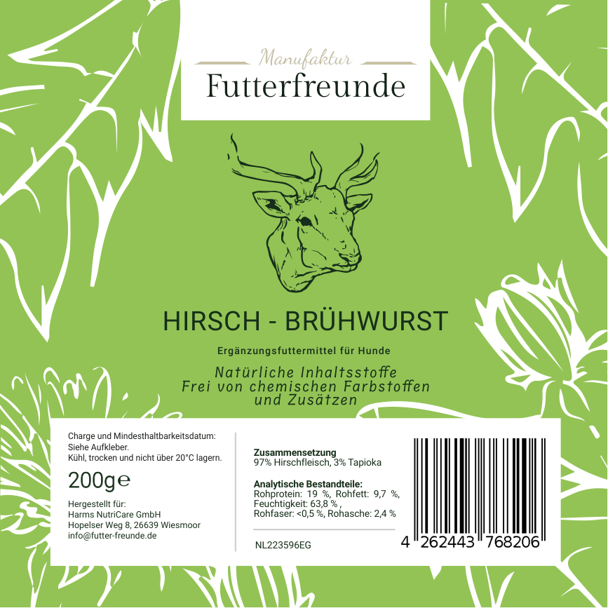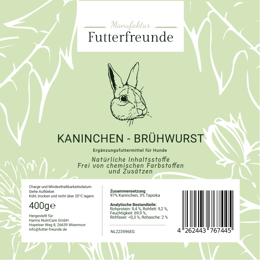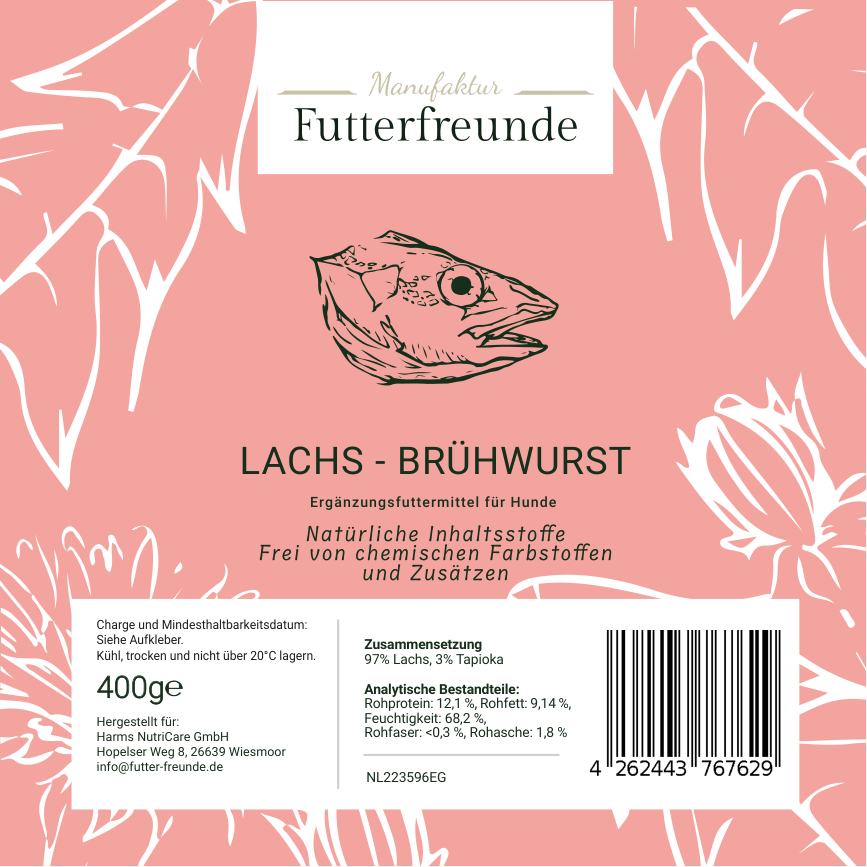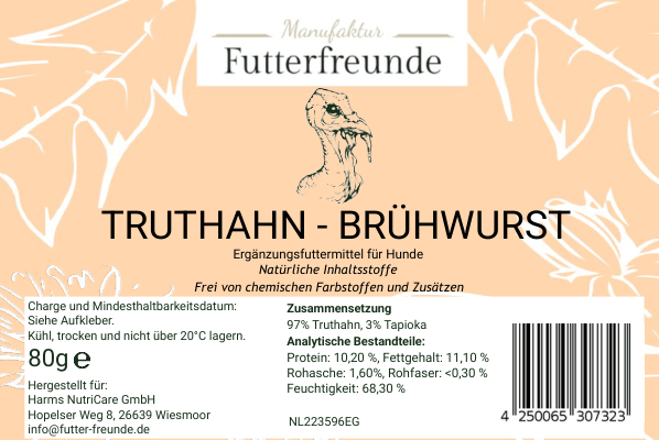 Unsere Fleischwurst ist eine schnittfeste, schonend gegarte Monoprotein-Mahlzeit für Hunde und eignet sich als Belohnung beim Training oder als praktische Alternative und Ergänzung zum BARFen – besonders unterwegs oder auf Reisen.