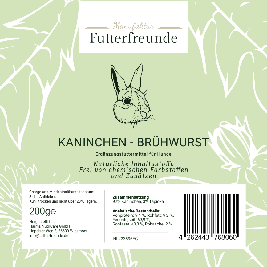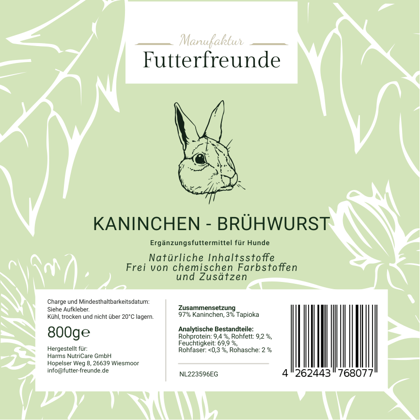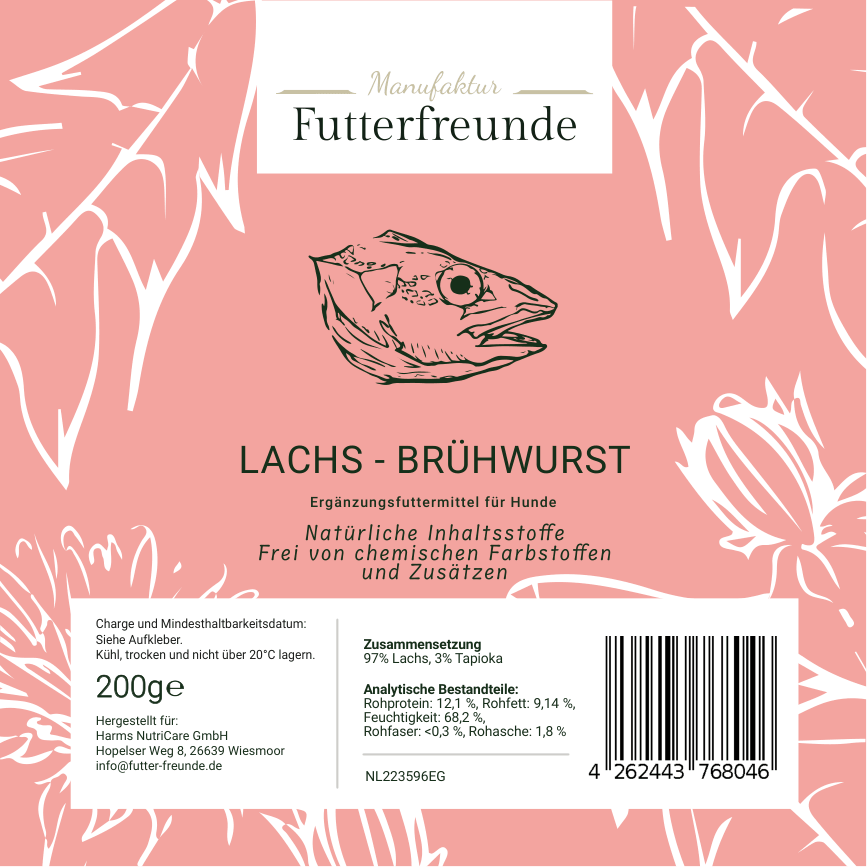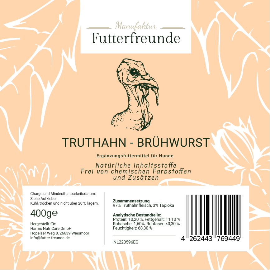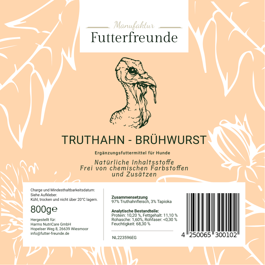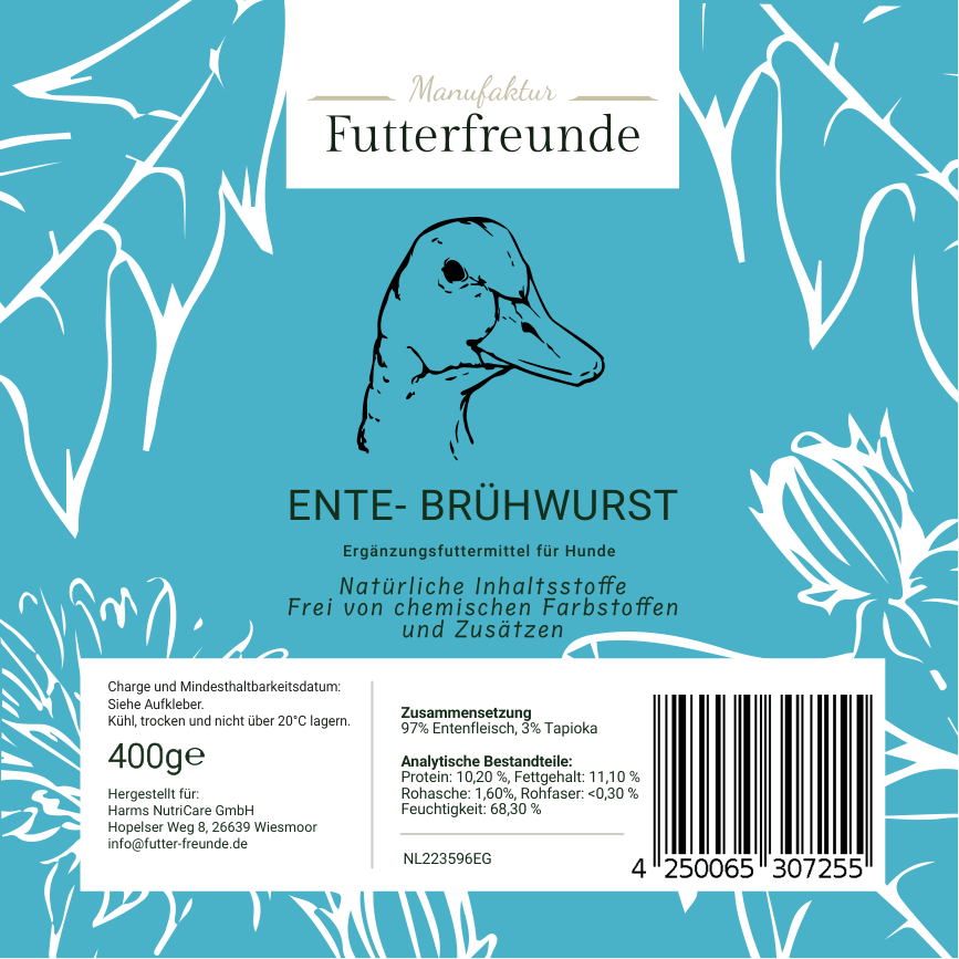 Unsere Fleischwurst ist eine schnittfeste, schonend gegarte Monoprotein-Mahlzeit für Hunde und eignet sich als Belohnung beim Training oder als praktische Alternative und Ergänzung zum BARFen – besonders unterwegs oder auf Reisen.